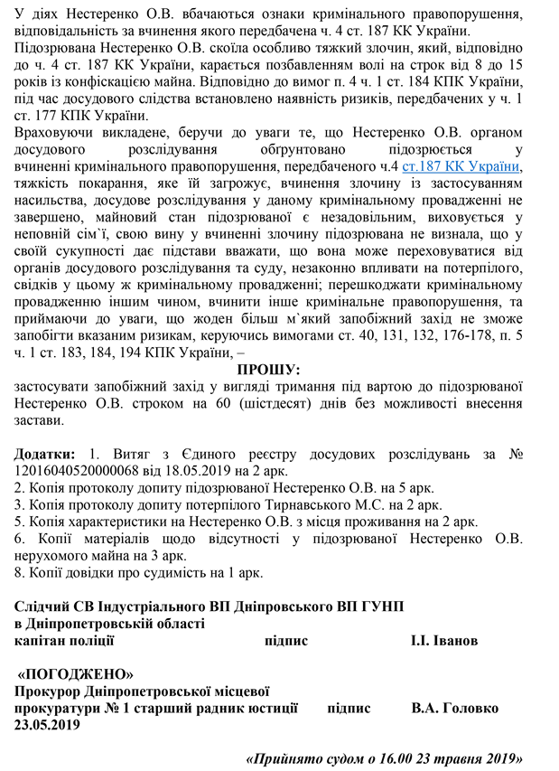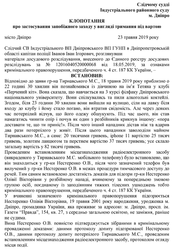 Ходатайство о применении меры пресечения