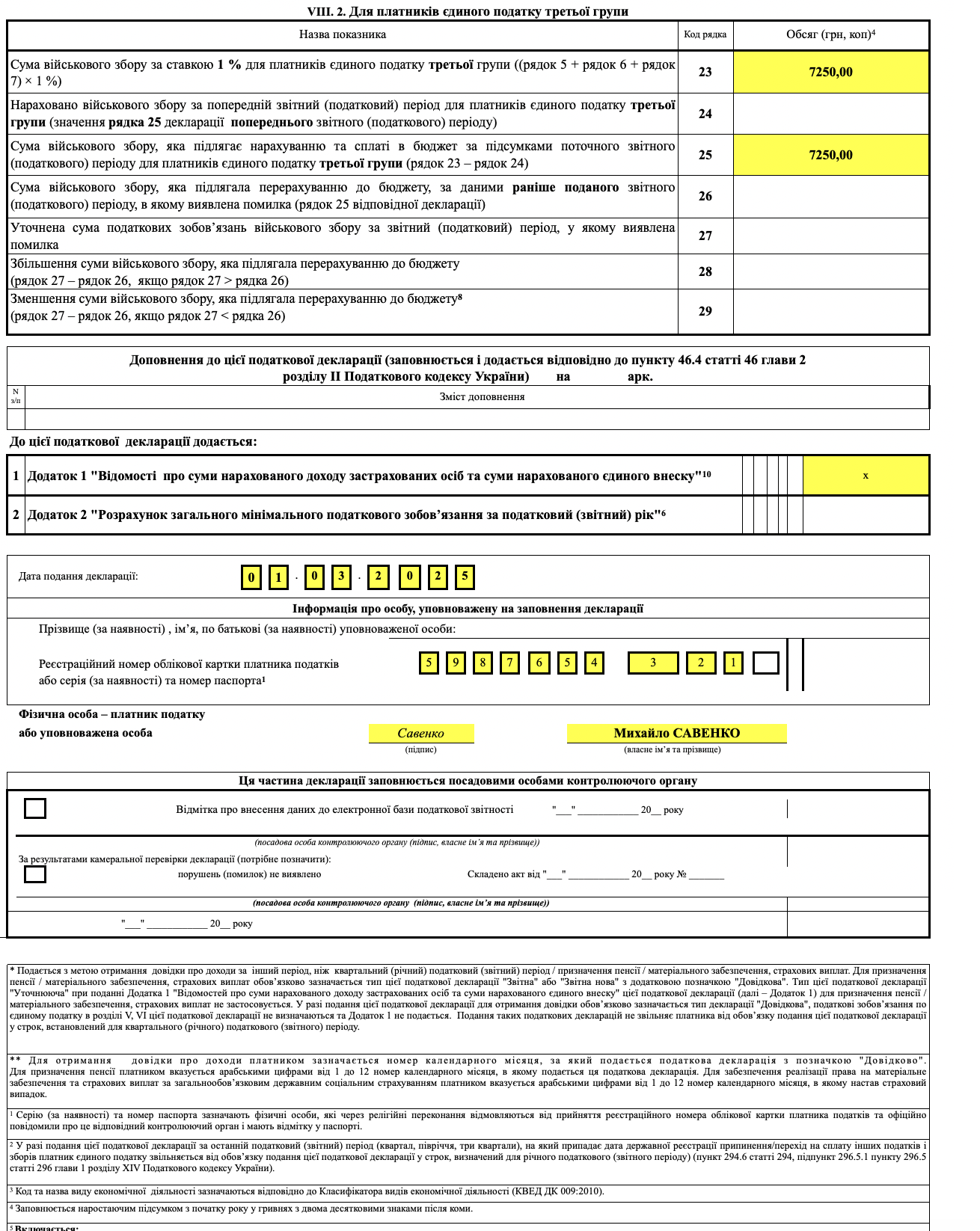 - Раньше необходимо было подавать еще и отчет ЕСВ, но представление ликвидационного звена ФЛП в 2025 году стало проще, достаточно подать в декларацию плательщика приложение №1, заменяющее отчет ЕСВ.