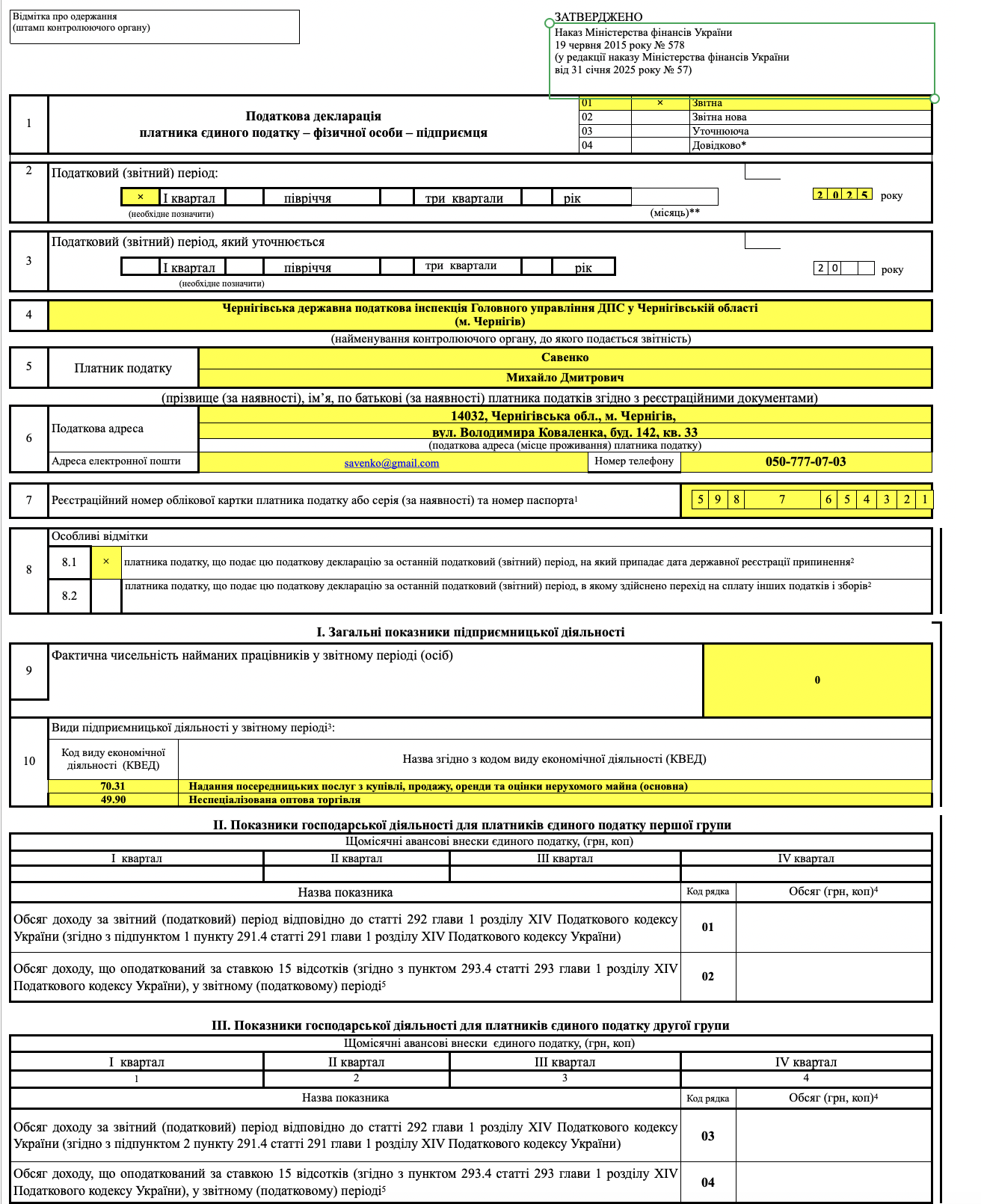 Ликвидационная декларация ФЛП 2 группа: пример заполнения 2025 г.