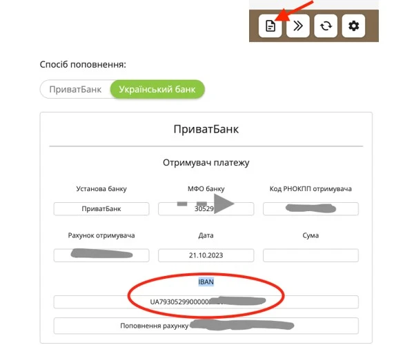 Для Приват-24 в веб-версии интерфейса в этом меню: "Кошелек → Выбор карты → Реквизиты карты (справа вверху) → Способ пополнения: Банки Украины → IBAN. "Полная или частичная публикация копий, подъемников или аннотированных обзоров материалов, размещенных на этом сайте, разрешается только с письменного разрешения редакции "Приват-24".