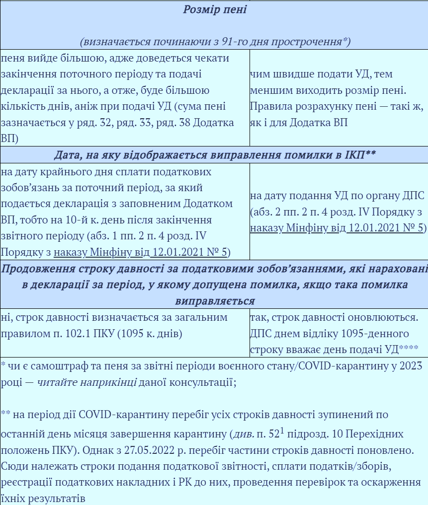 - После 24 февраля 2022 штрафные санкции и пеня не будут начисляться. Иными словами, если в отчетном (налоговом) периоде в период действия чрезвычайного положения ошибка привела к недоплате налога, то освобождается от наложенных на него штрафов и пени (на основании пп. 14.14 подп. 69.1 объясняет ЗИР 132.01). Условиями такого увольнения являются соблюдение требований п. 50.1 НКУ, в частности, четкое отражение в составе декларации, которая подается за налоговый период, следующий за периодом, в котором обнаружена недоплата, или исправление ошибок и погашение суммы выявленной недоплаты. Эта норма действует с 1 марта 2023 г., когда вступил в силу Закон № 2836 от 13 декабря 2022 г. ("Закон № 2836"), которым был обновлен пункт 69.1 подраздела 10. Пункт 69.1. изложено в новой редакции.