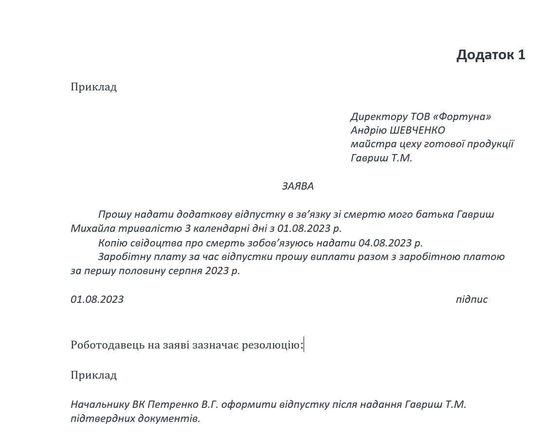 Отпуск по смерти родственника. Пример 1