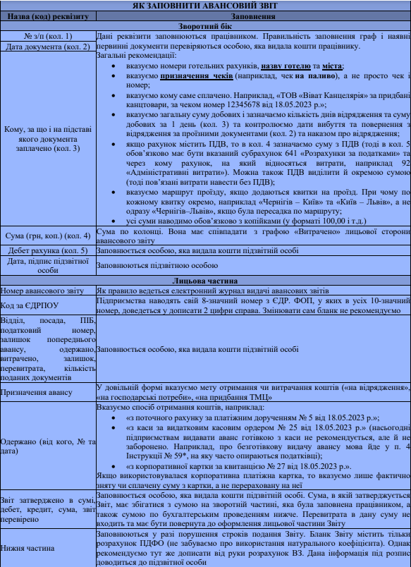 Начиная с 1 апреля 2023 года, согласно обновленным требованиям пункта 170.9.3 Налогового кодекса Украины, авансовый отчет должен быть представлен в течение месяца, следующего за месяцем завершения следующих событий: