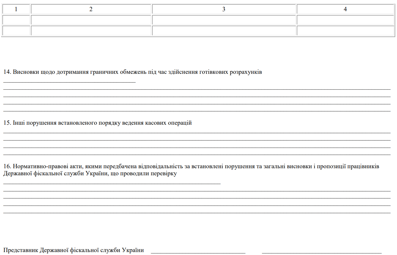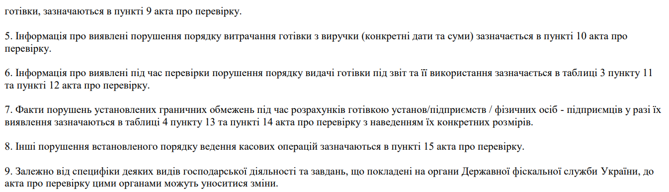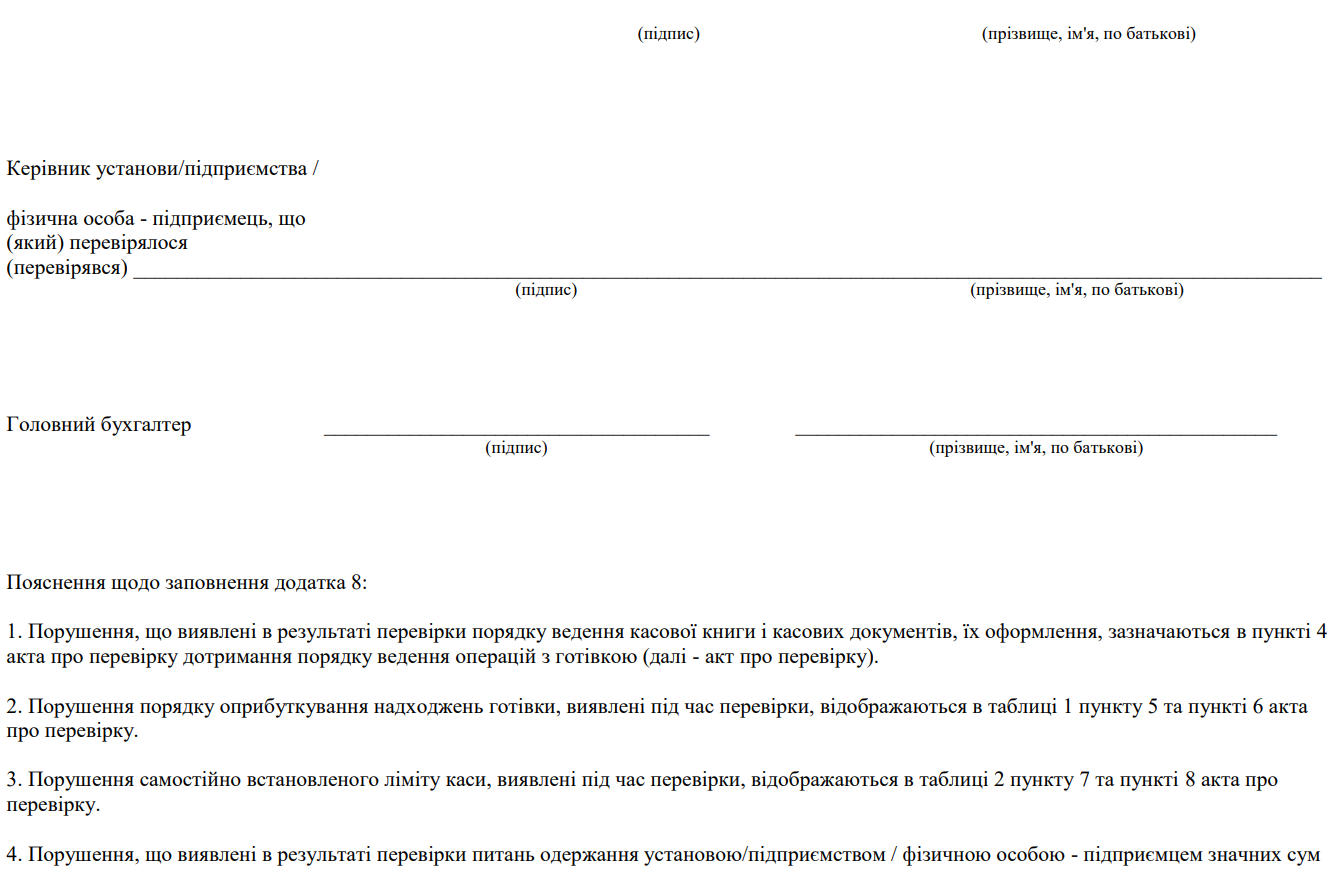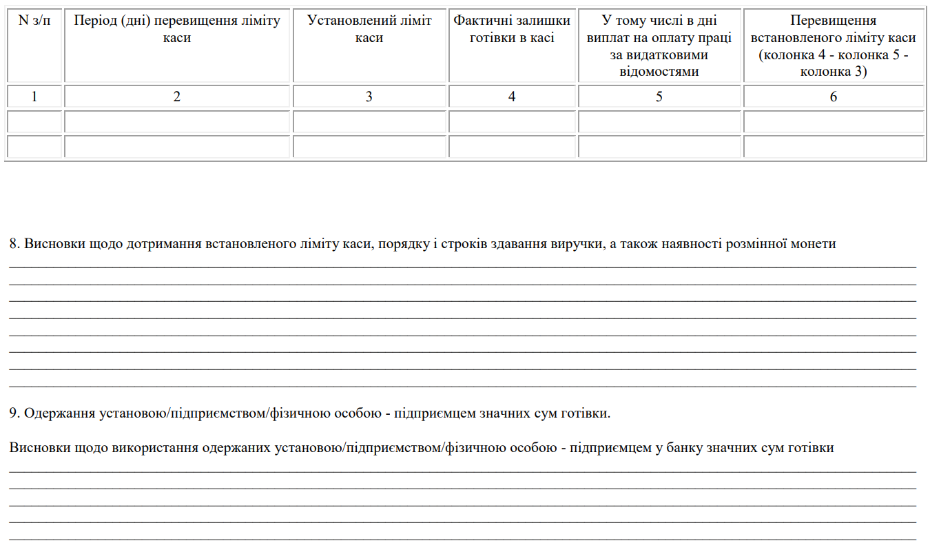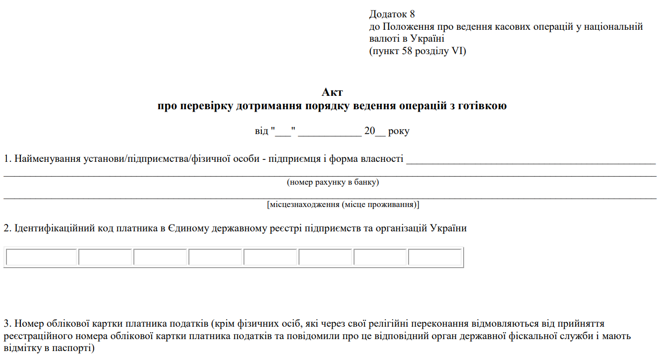 Повна назва бланку: Акт про перевірку дотримання порядку ведення операцій з готівкою