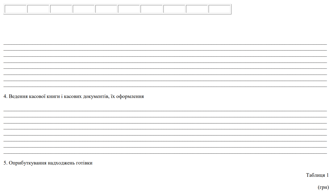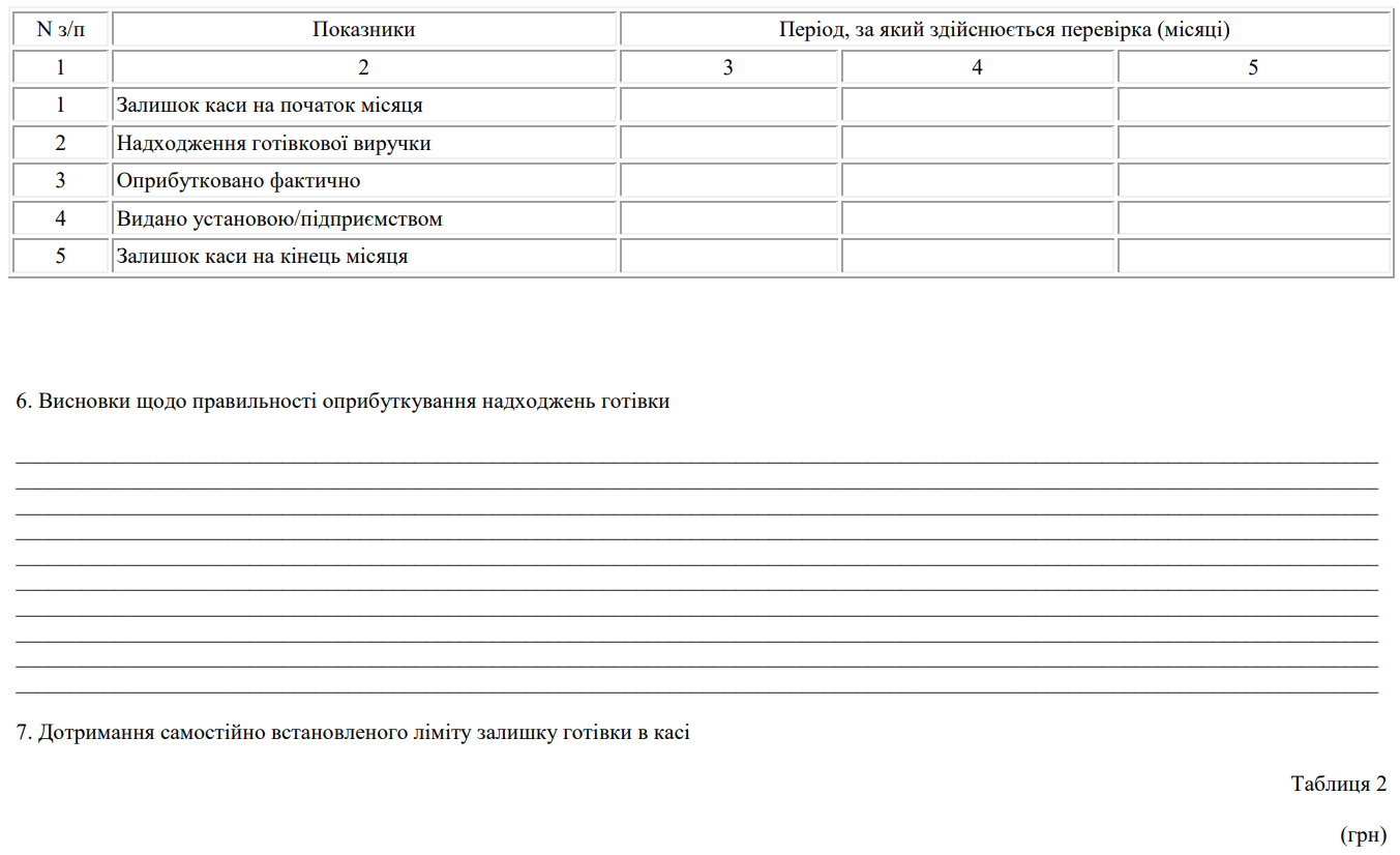 "Акт про перевірку дотримання порядку ведення операцій з готівкою" зразок