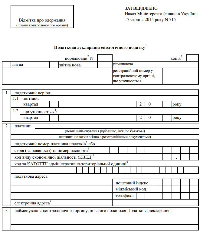 Повна назва бланку: Податкова декларація екологічного податку (з додатками)