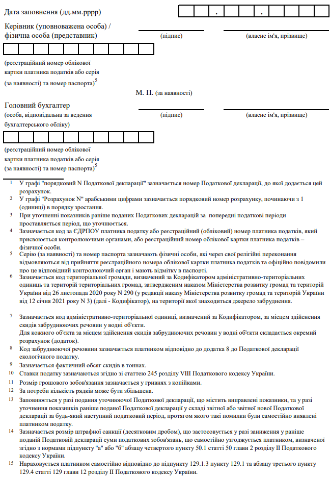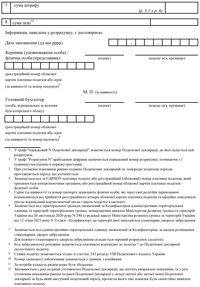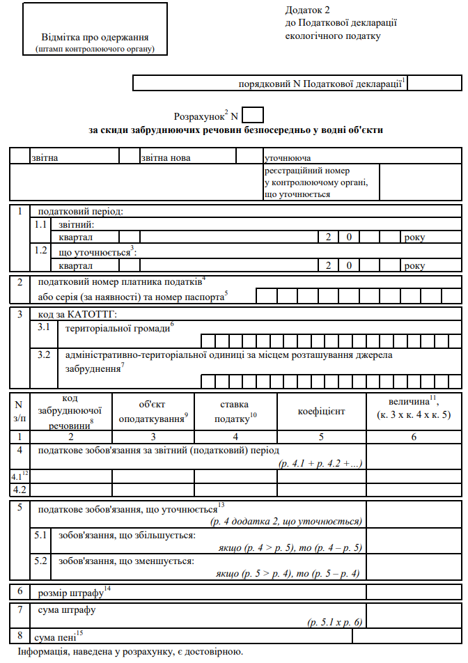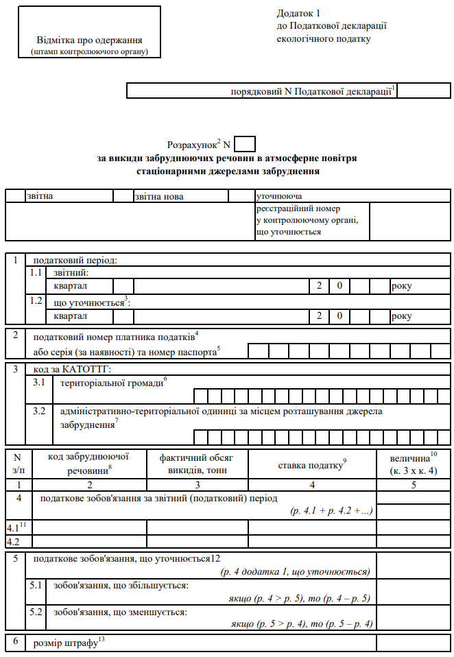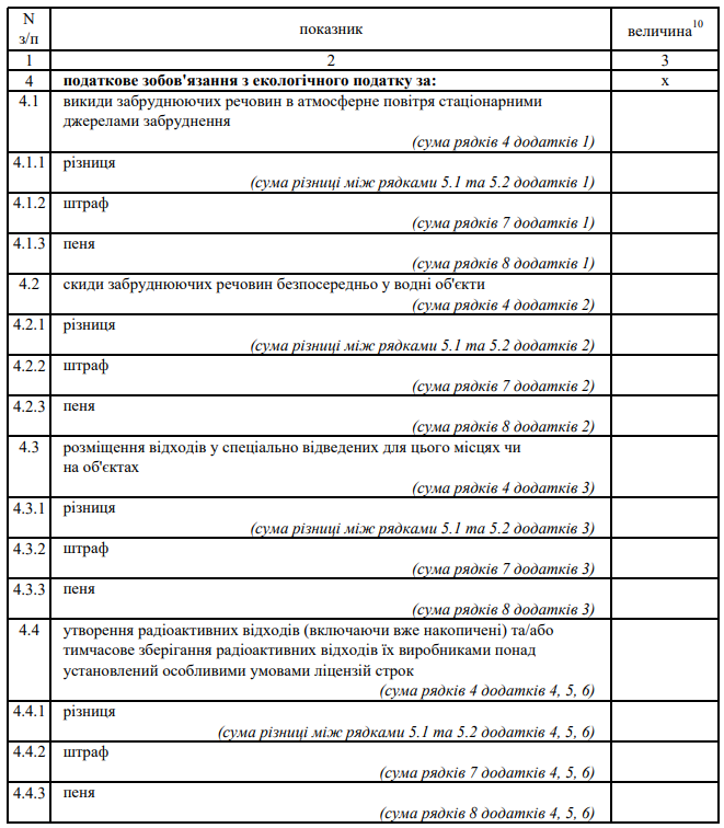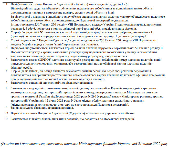 Декларація екологічного податку (з додатками)