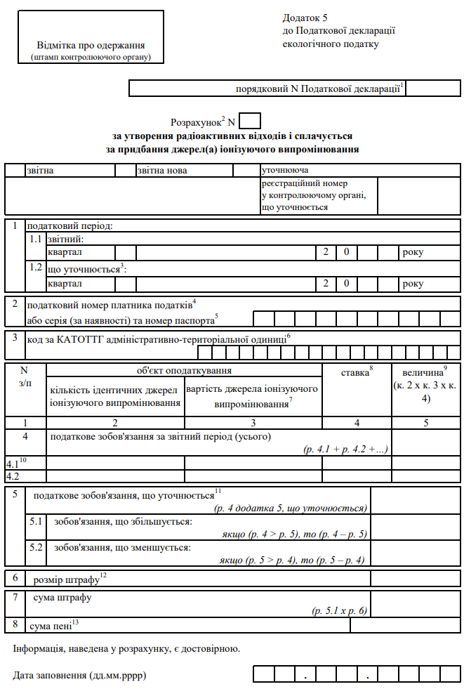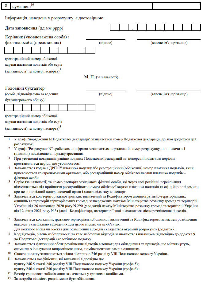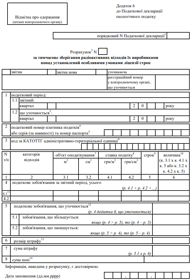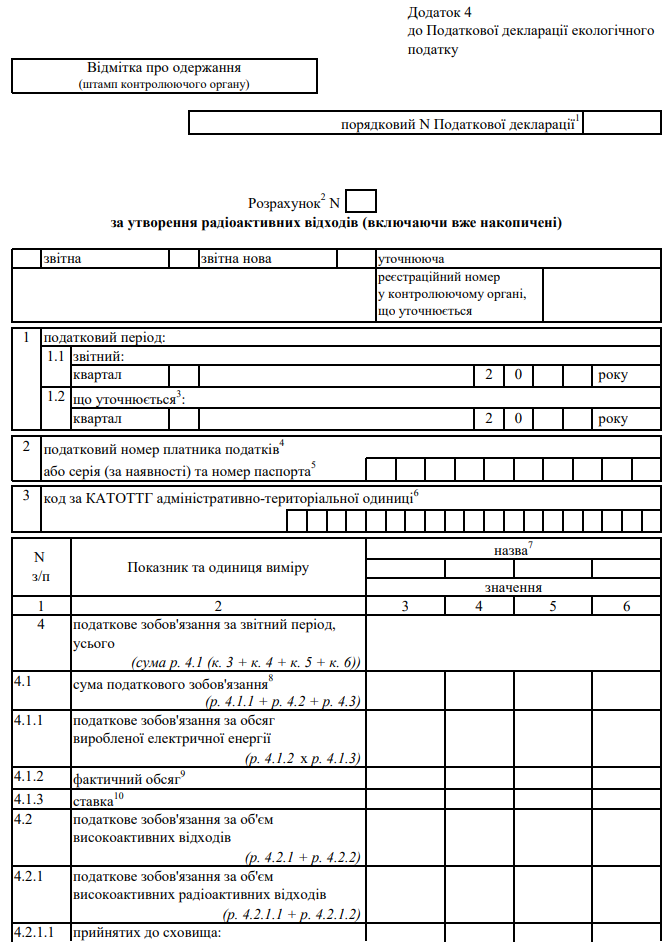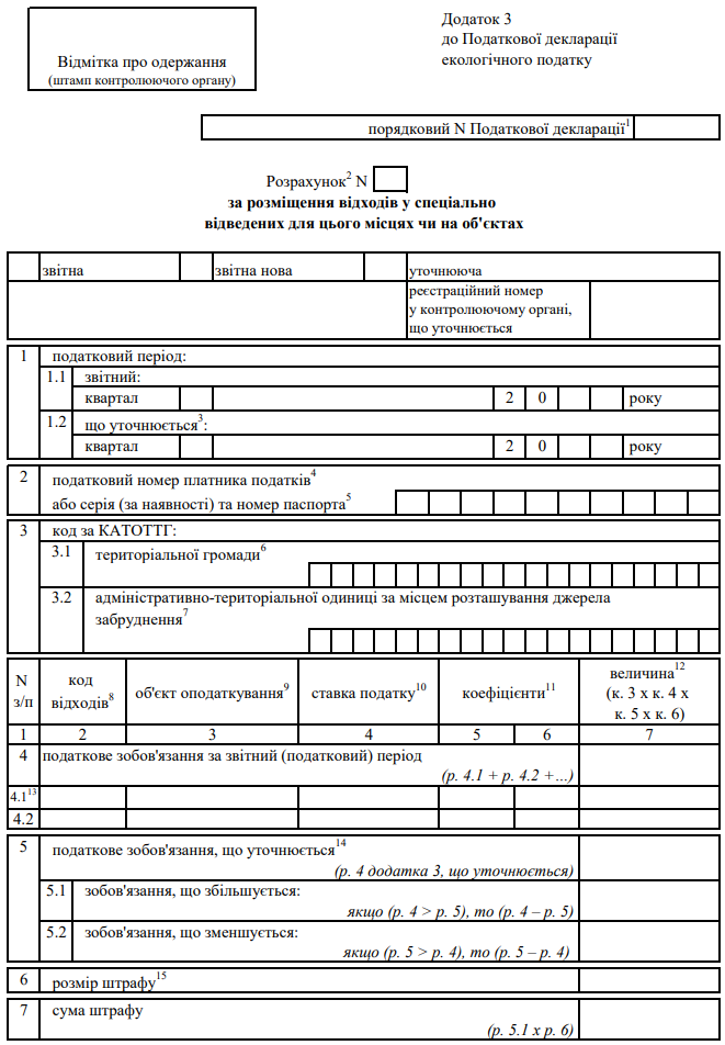 Декларація екологічного податку (з додатками)