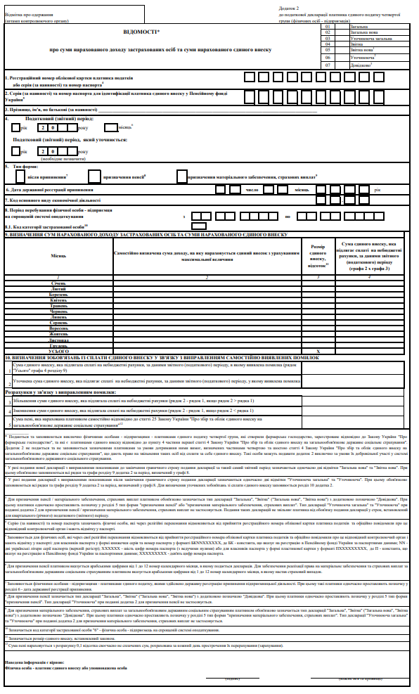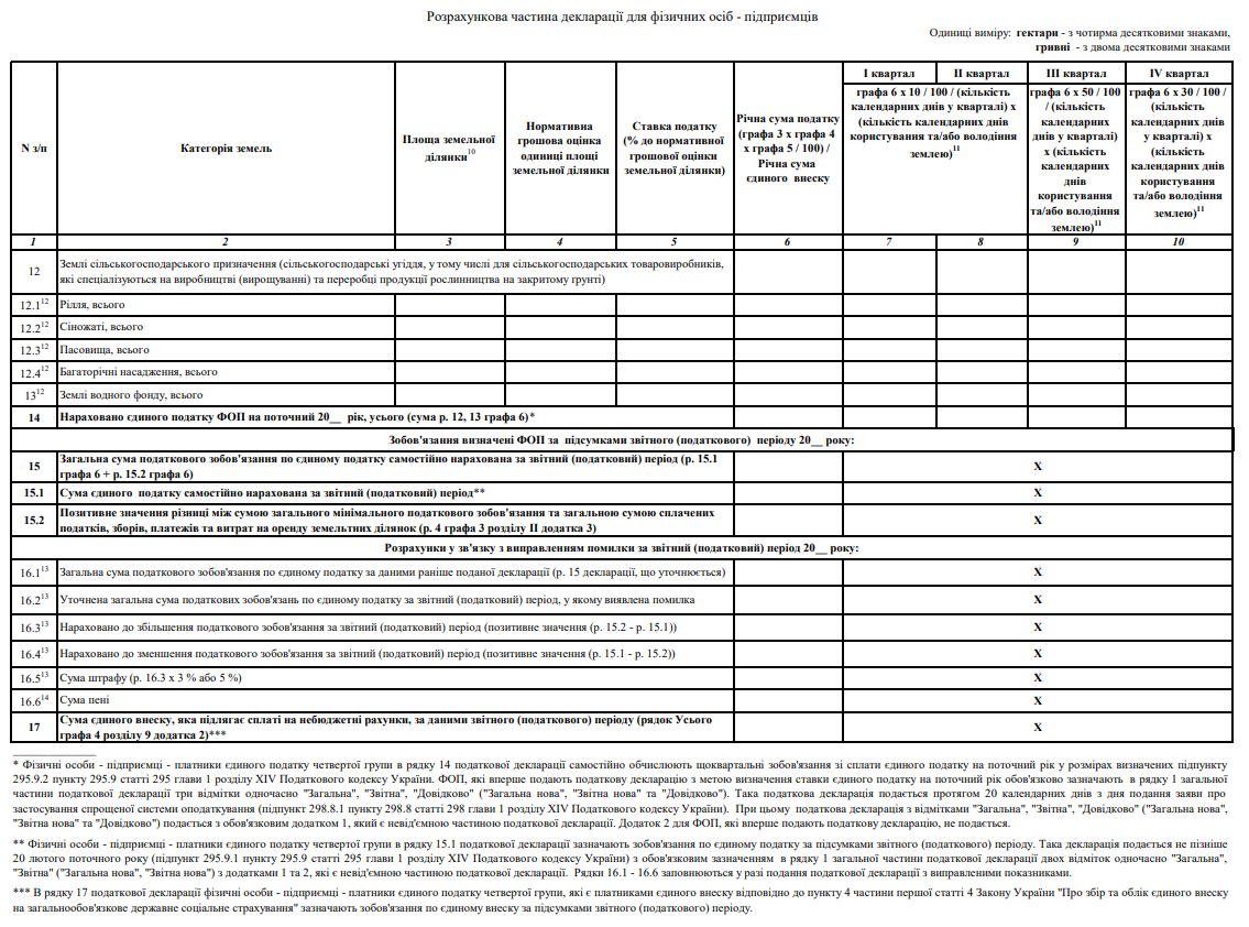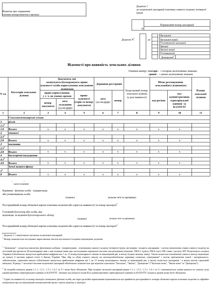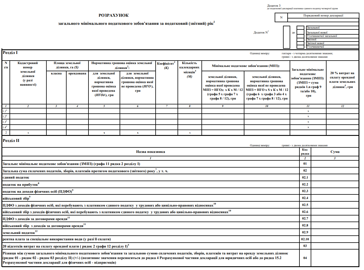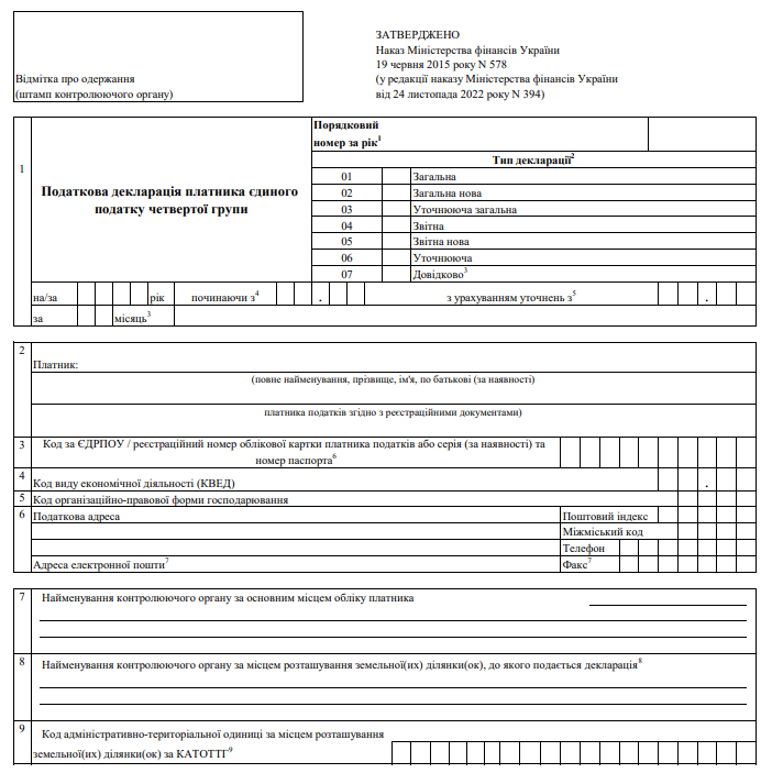 Повна назва бланку: Податкова декларація платника єдиного податку четвертої групи