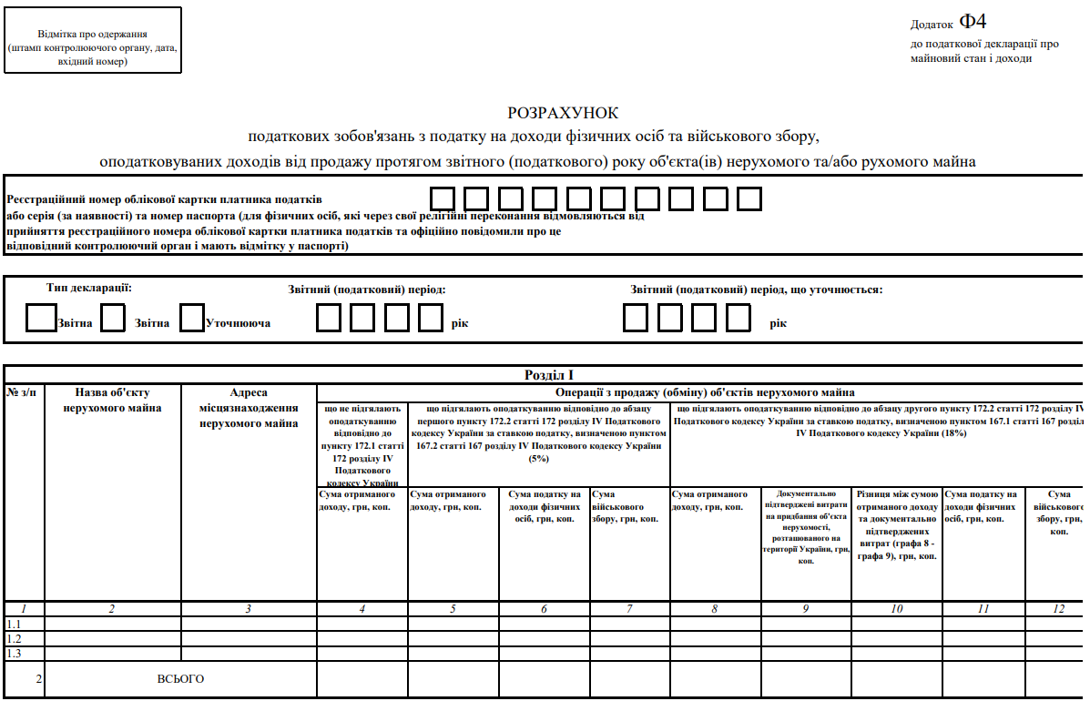 Повна назва бланку: Податкова декларація про майновий стан і доходи