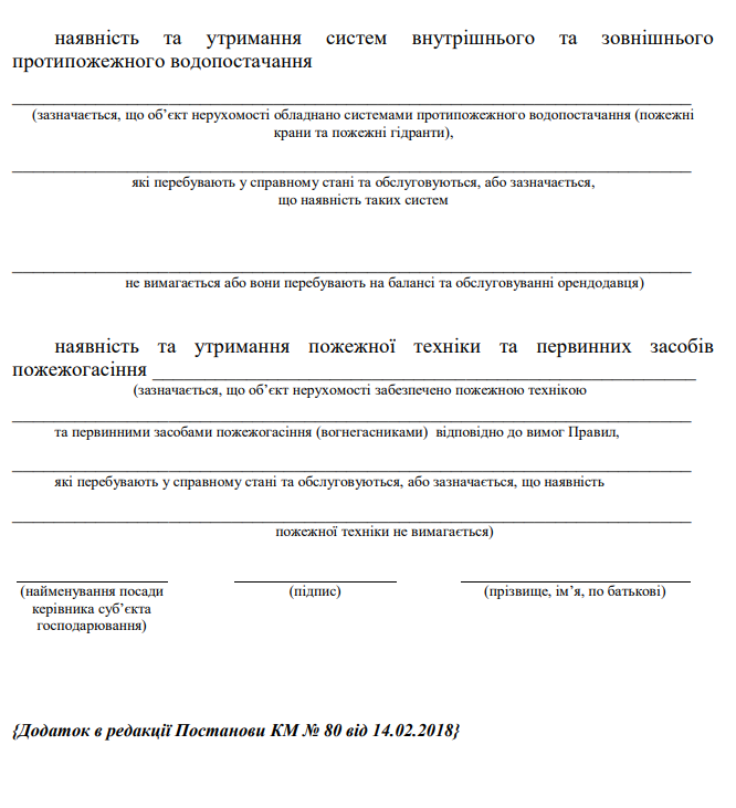 Декларація відповідності пожежним вимогам