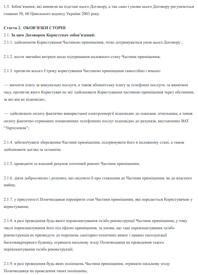Затверджено бланк "Договір безоплатного користування приміщенням"