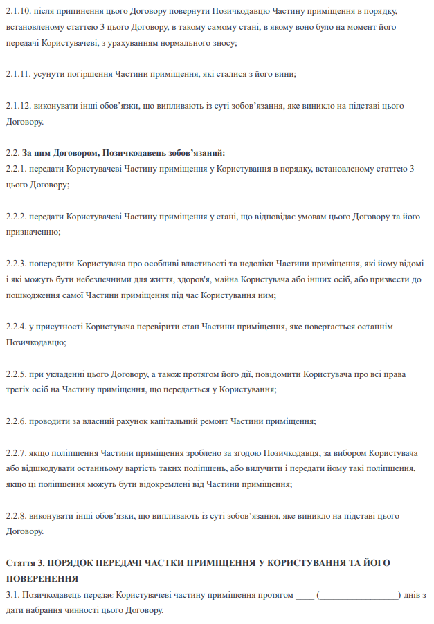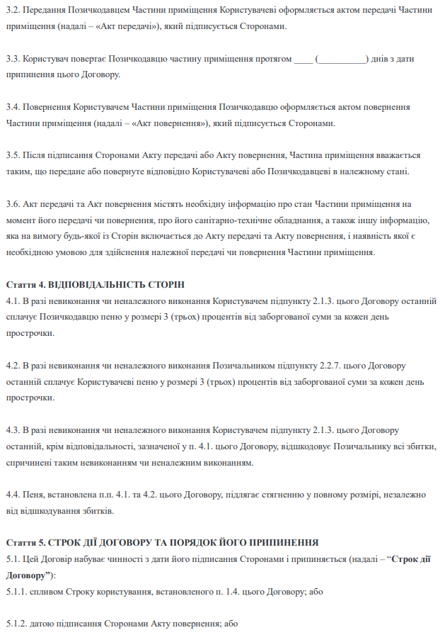 Завантажити бланк: "Договір безоплатного користування приміщенням"