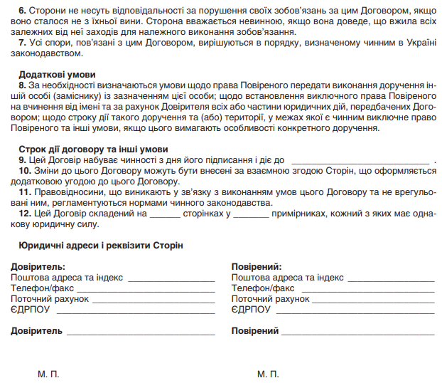 "Договір доручення" зразок