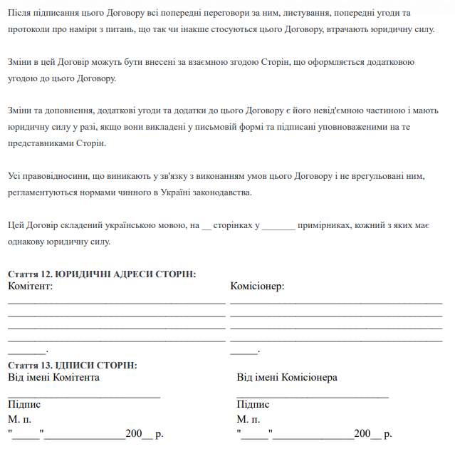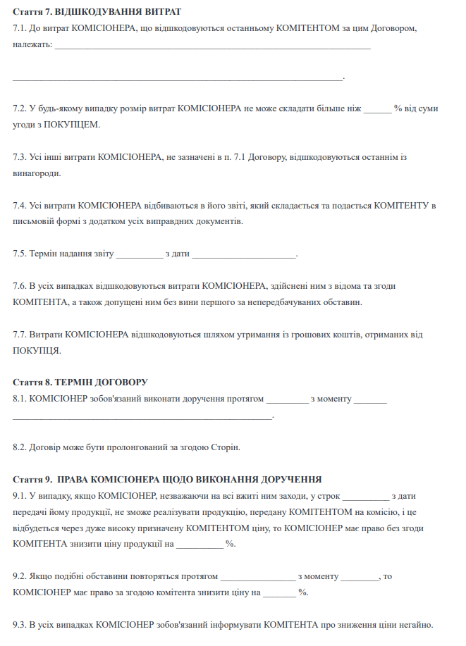 Завантажити бланк: "Договір комісії на продаж продукції"