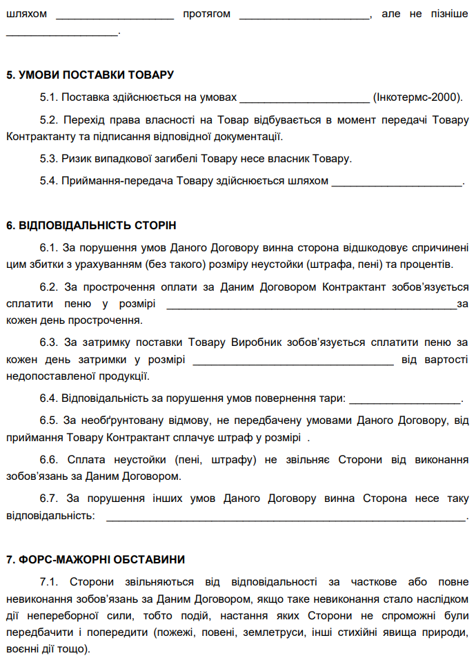Завантажити бланк: "Договір контрактації сільськогосподарської продукції"