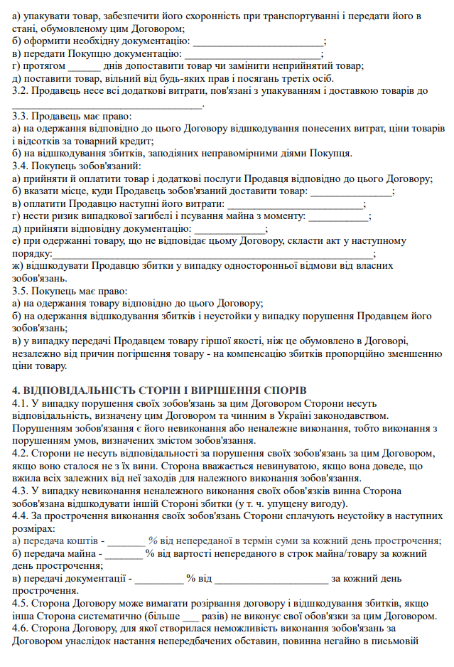 Завантажити бланк: "Договір купівлі-продажу товарів на умовах товарного кредиту"