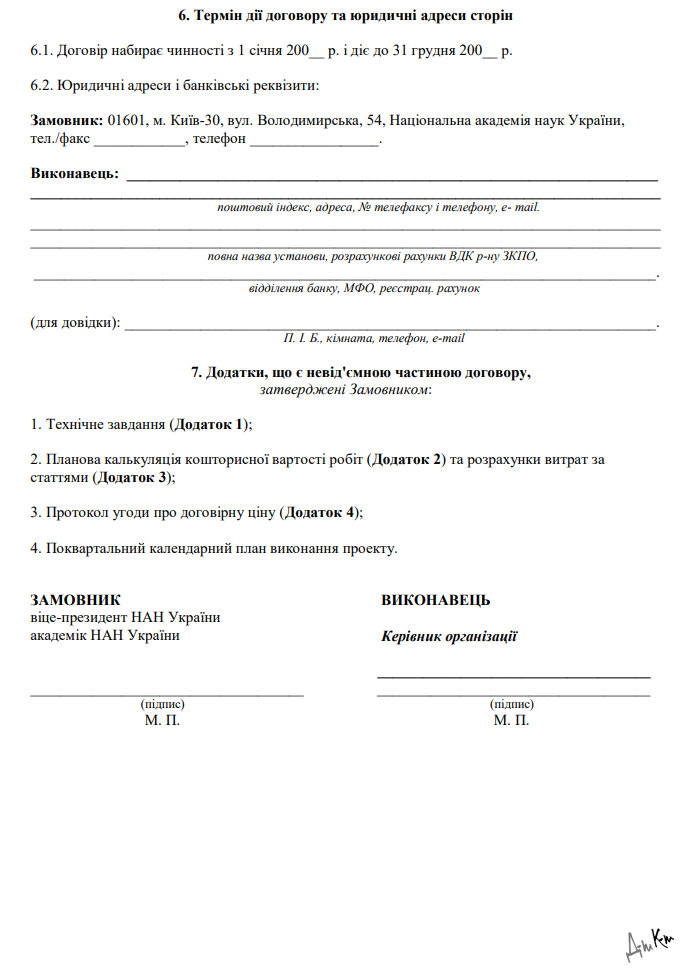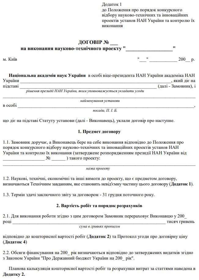 Повна назва бланку: Договір на виконання науково-технічного проекту.
