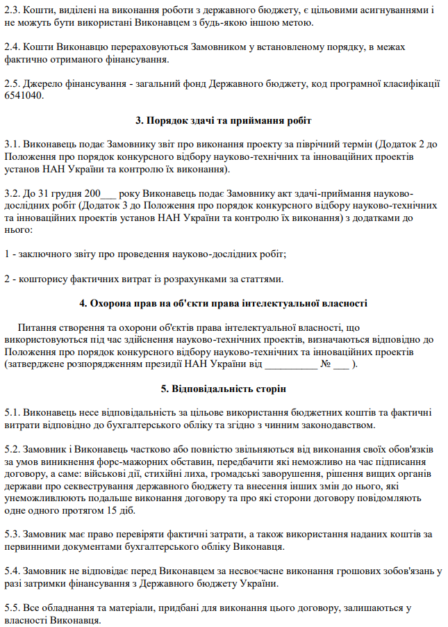 Затверджено бланк "Договір на виконання науково-технічного проекту"