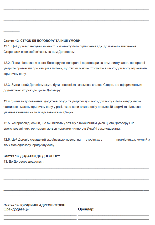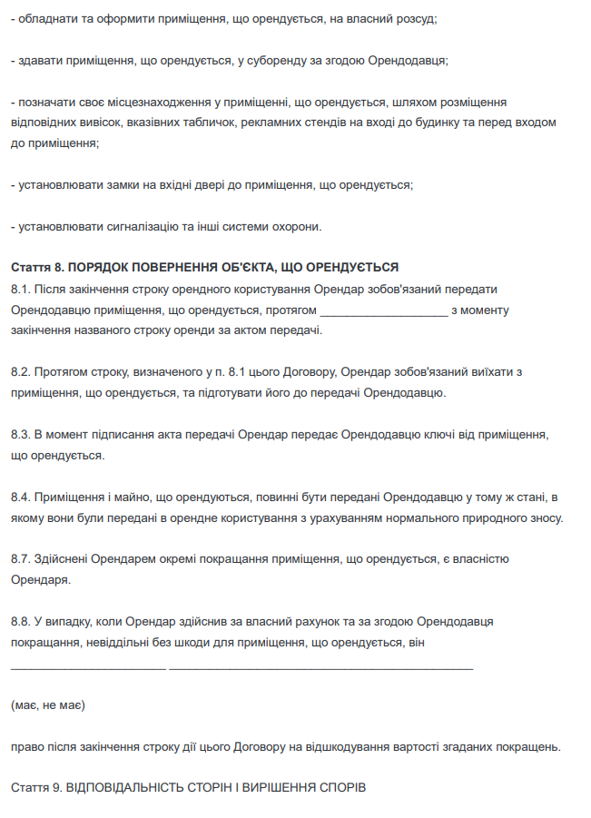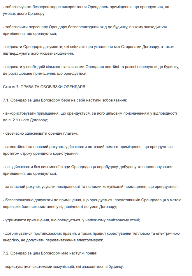 Договір оренди кімнати для офісу