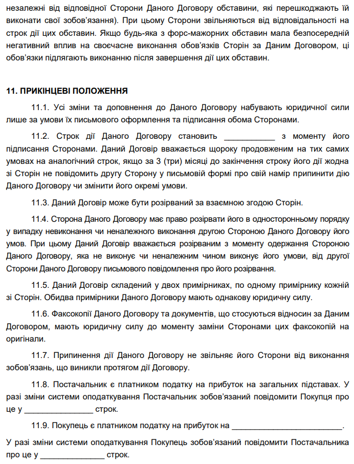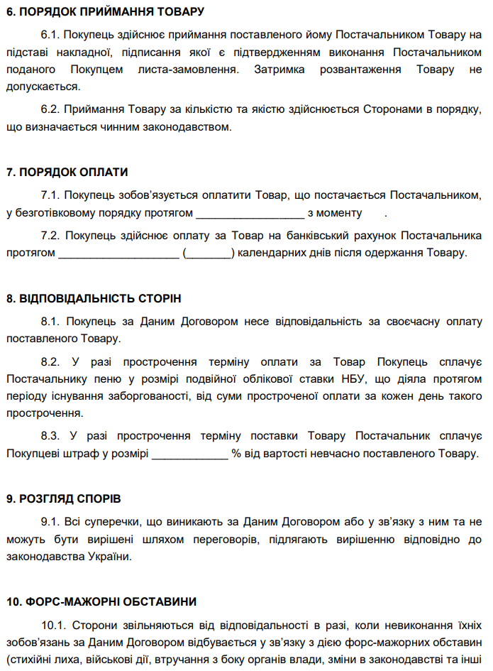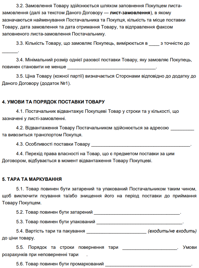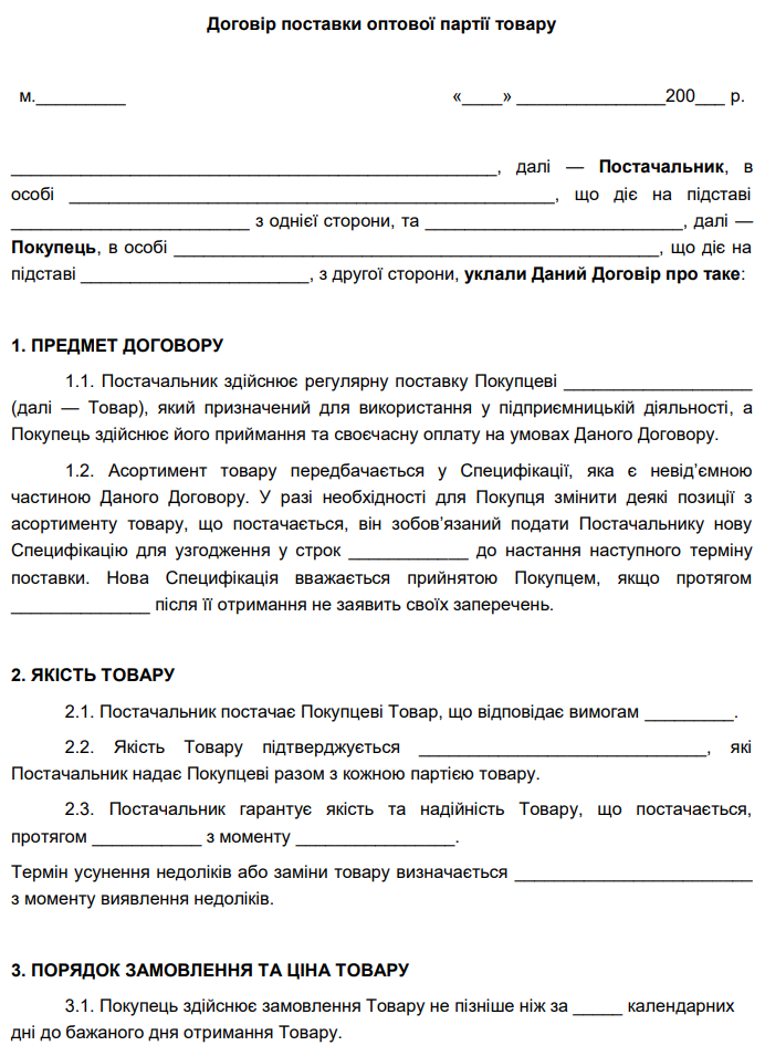 Завантажити бланк: "Договір поставки оптової партії товару"