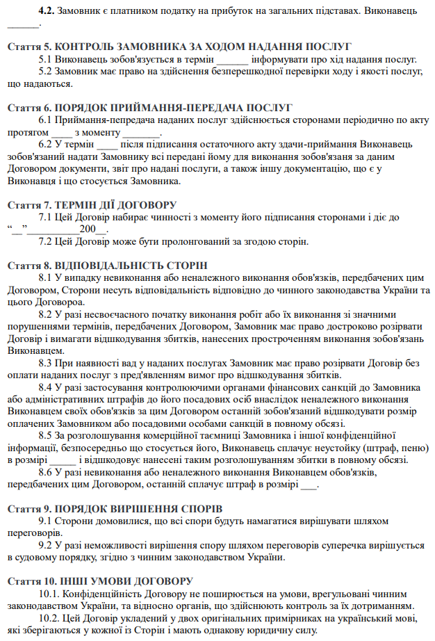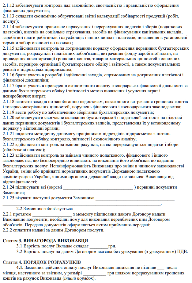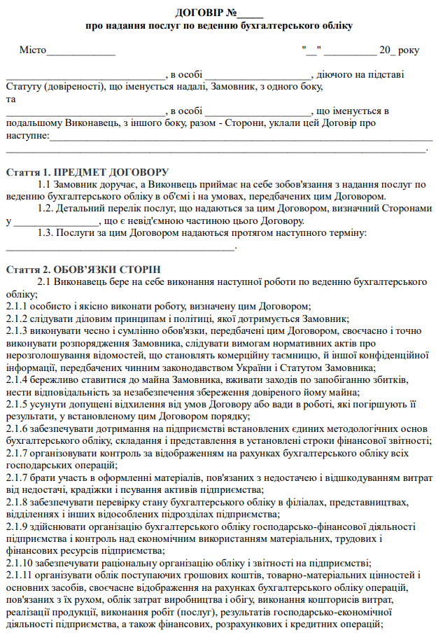 Затверджено бланк "Договір про надання послуг по веденню бухгалтерського обліку"