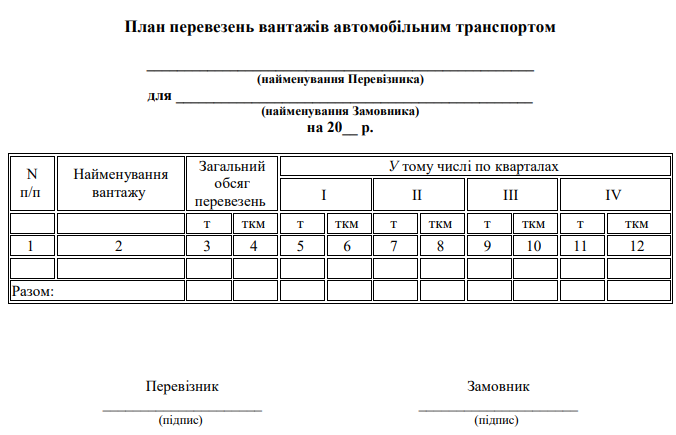 Затверджено бланк "Договір про перевезення вантажів автомобільним транспортом у місцевому та міжміському сполученні"