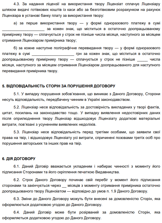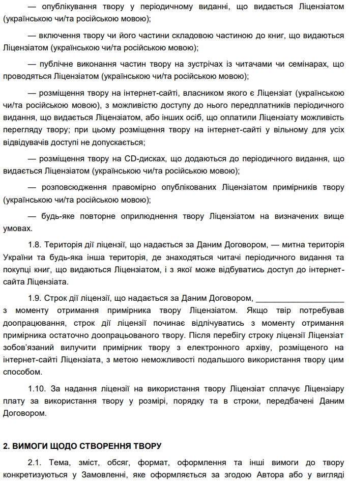 Затверджено бланк "Договір про створення за замовленням і використання статті"