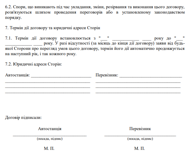 Затверджено бланк "Договір про сумісну діяльність, пов'язану з обслуговуванням пасажирів автомобільним транспортом"