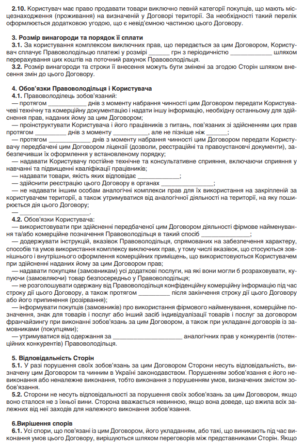 Завантажити бланк: "Договір товарного франчайзингу"