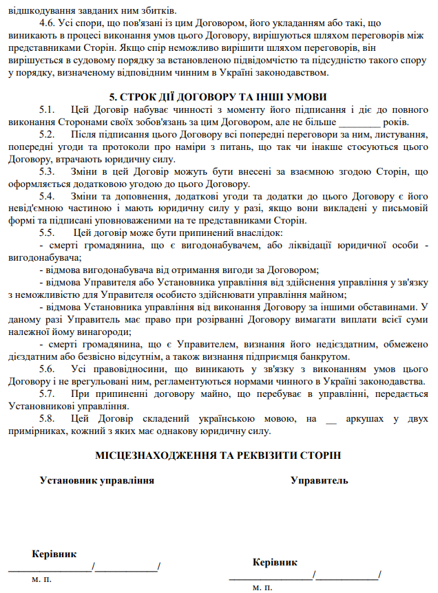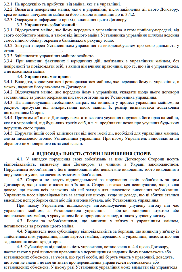 "Договір управління майном" зразок