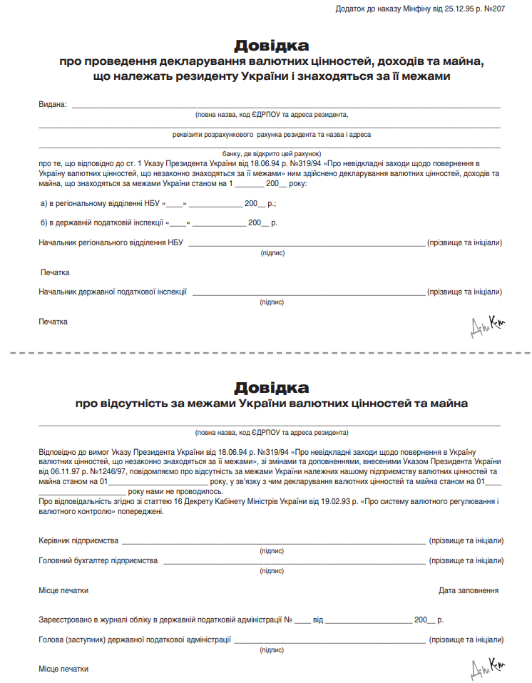 Повна назва бланку: Довідка про відсутність за межами України валютних цінностей та майна