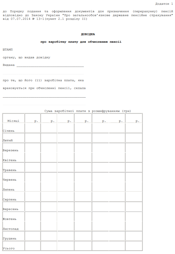 Затверджено бланк "Довідка про заробітну плату для обчислення пенсії"