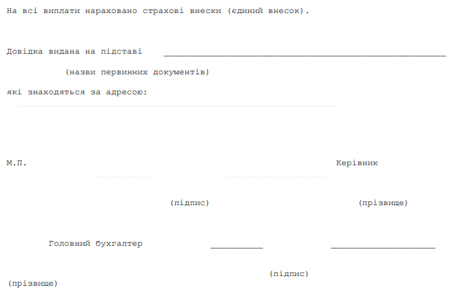 Повна назва бланку: Довідка про заробітну плату для обчислення пенсії.