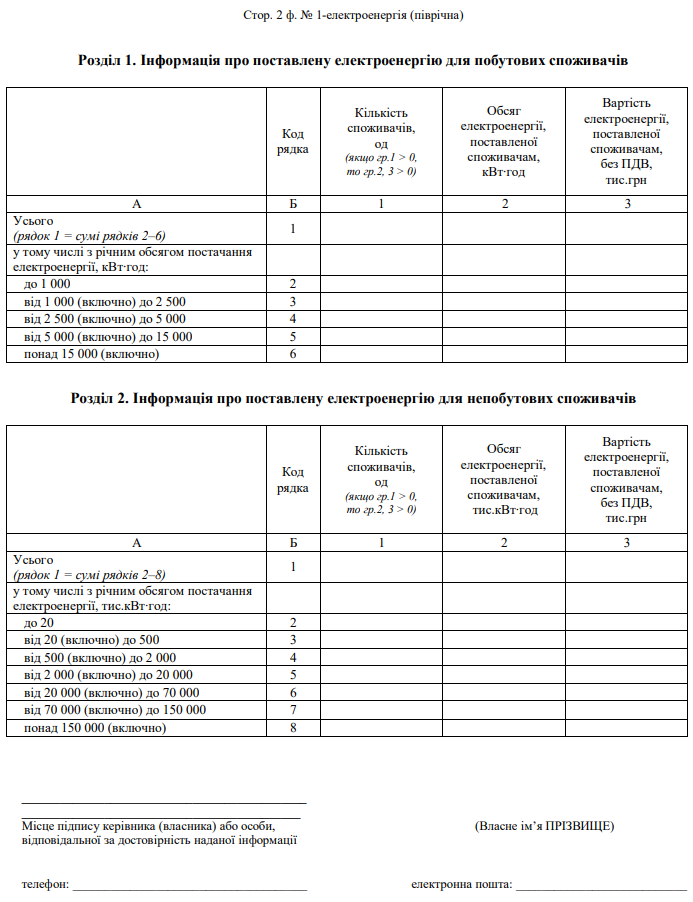 Завантажити бланк: "Форма №1-електроенергія (піврічна)"