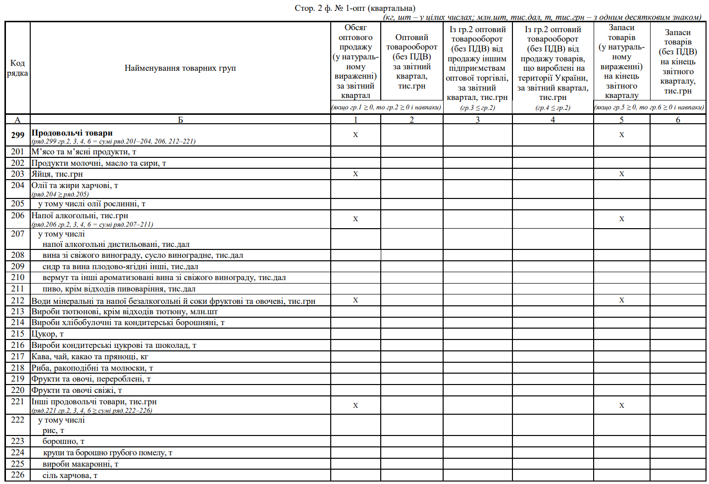 Повна назва бланку: Звіт про продаж і запаси товарів (продукції) в оптовій торгівлі. Форма №1-опт (квартальна)