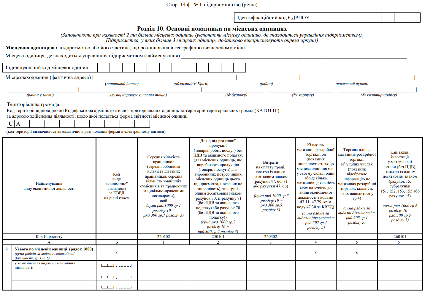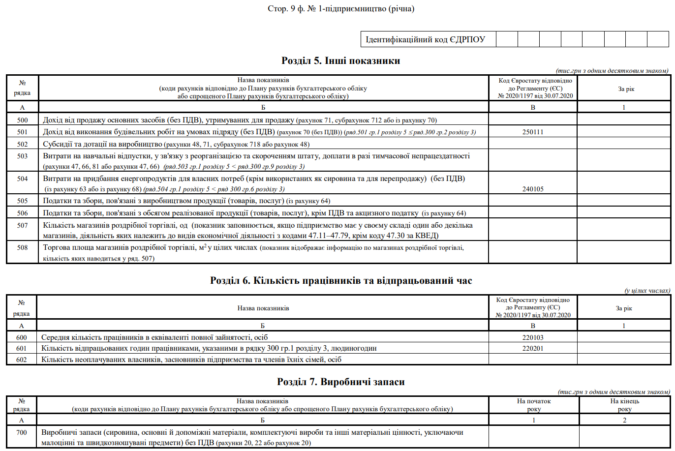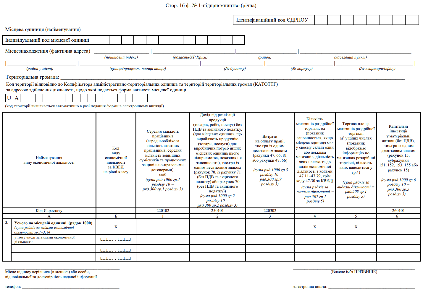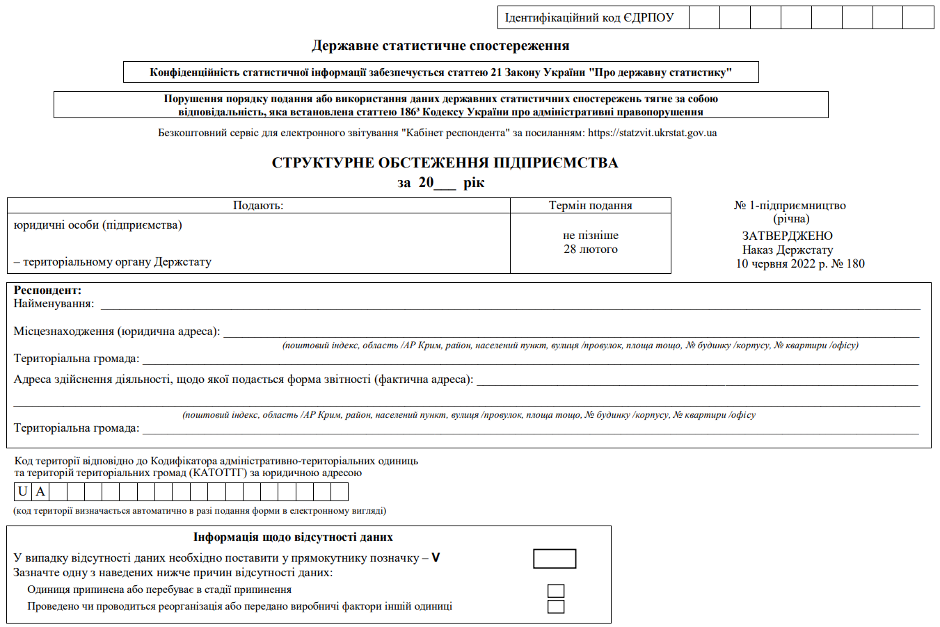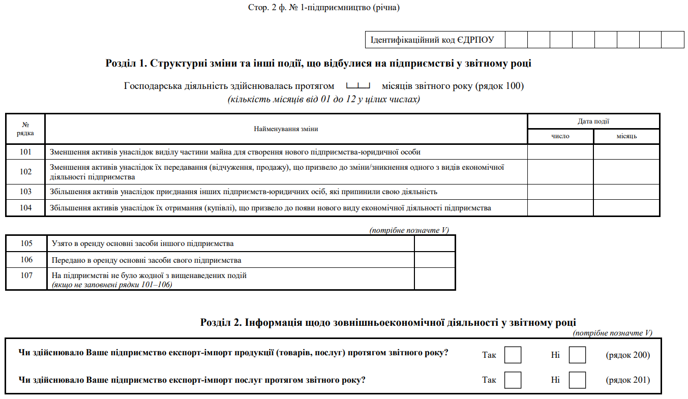 Повна назва бланку: Структурне обстеження підприємства за 20___ рік. Форма №1-підприємництво (річна)