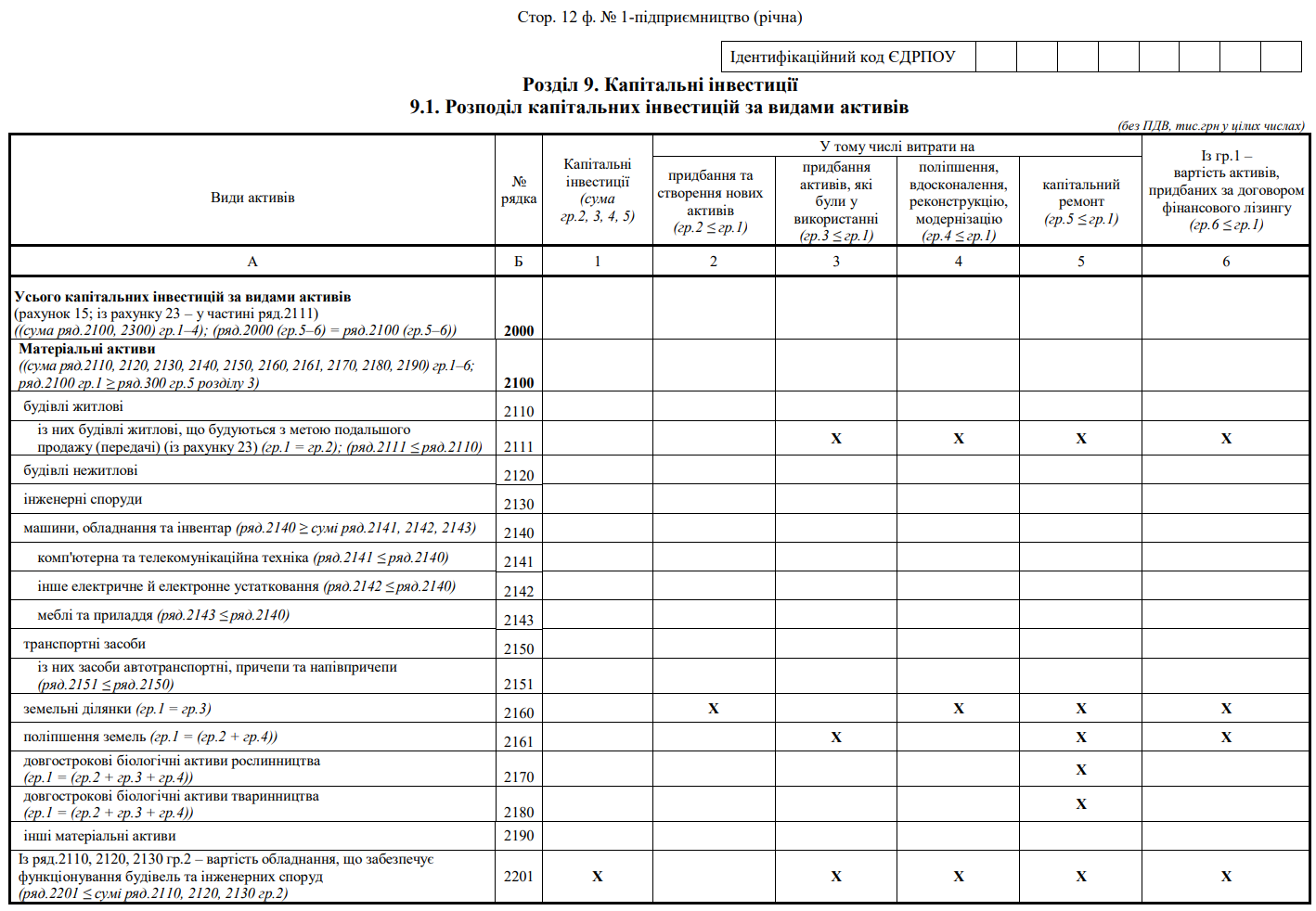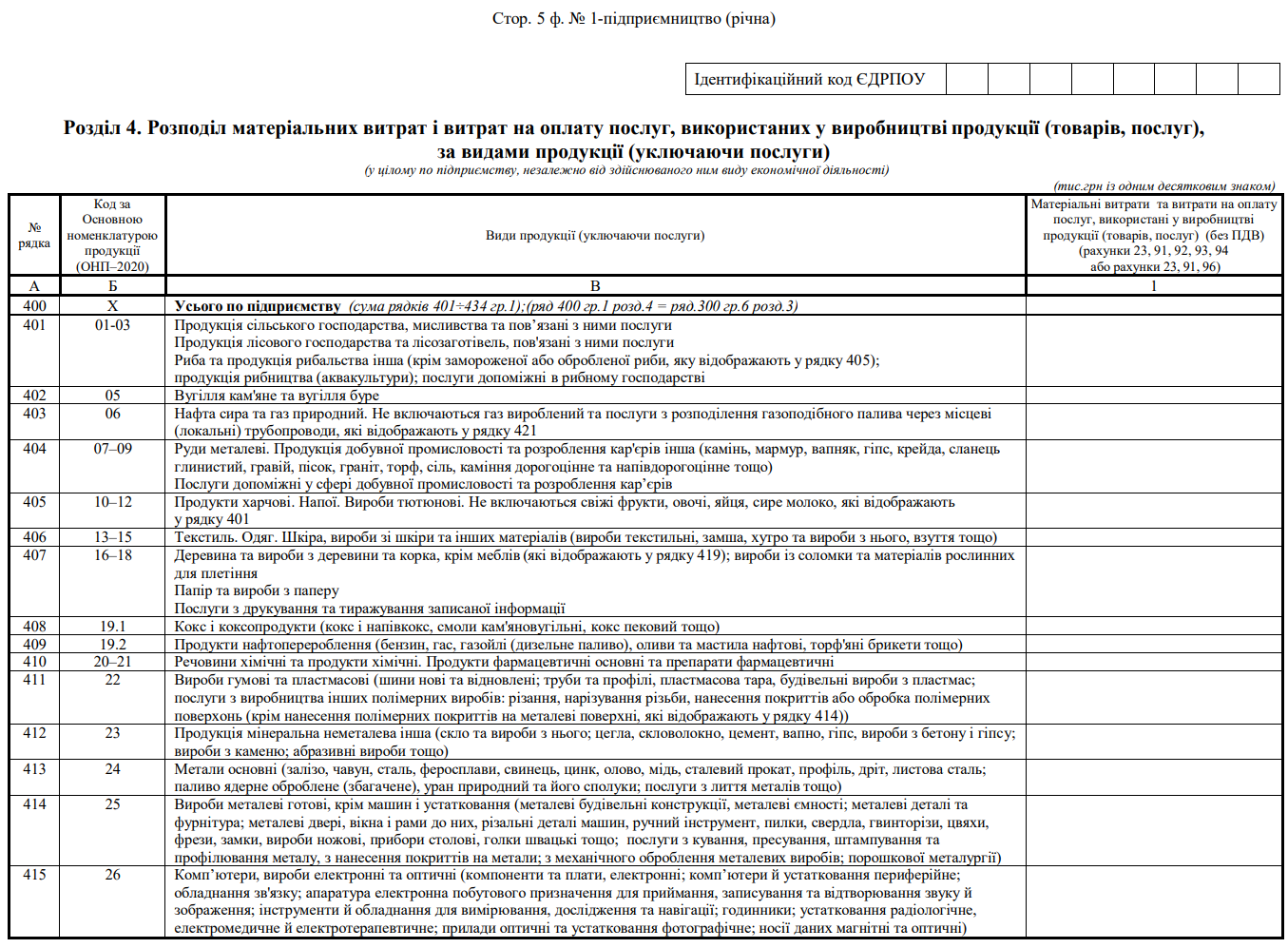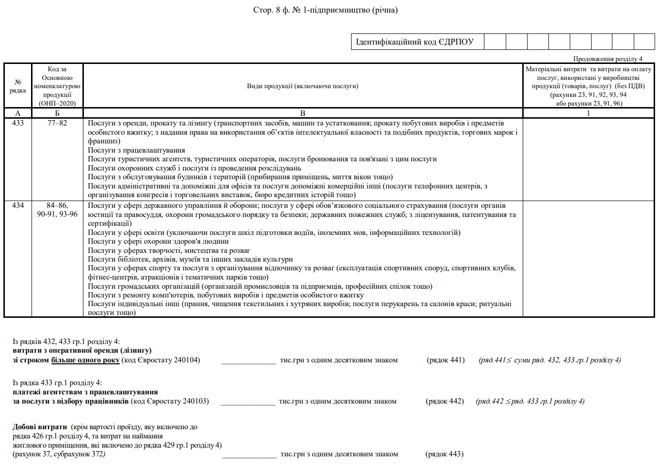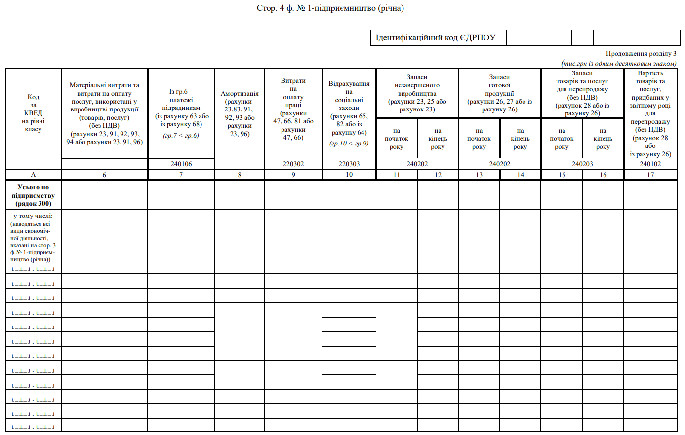 Повна назва бланку: Структурне обстеження підприємства за 20___ рік. Форма №1-підприємництво (річна)