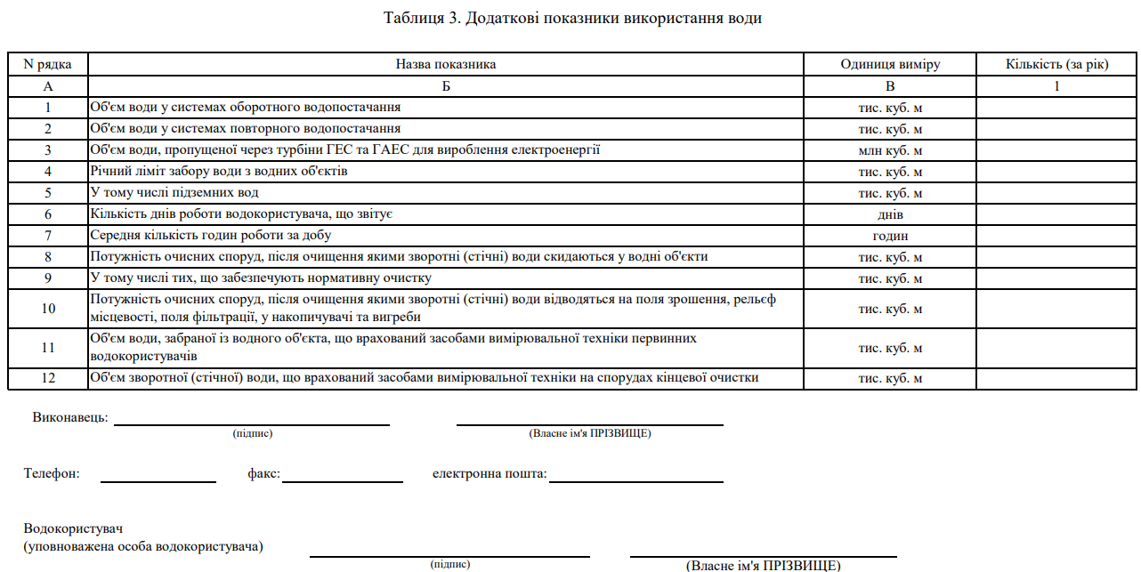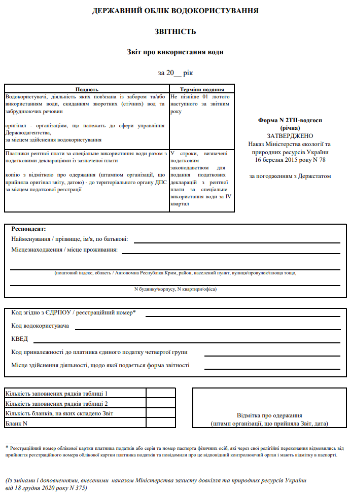 Повна назва бланку: Звіт про використання води. Форма №2ТП-водгосп
