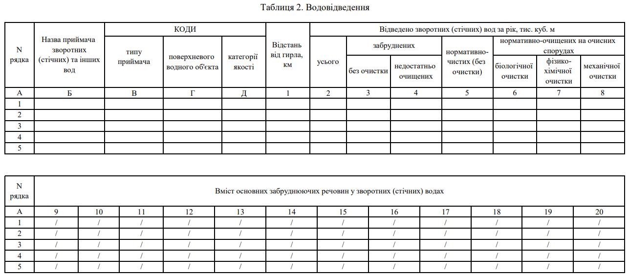 "Форма №2ТП-водгосп" зразок