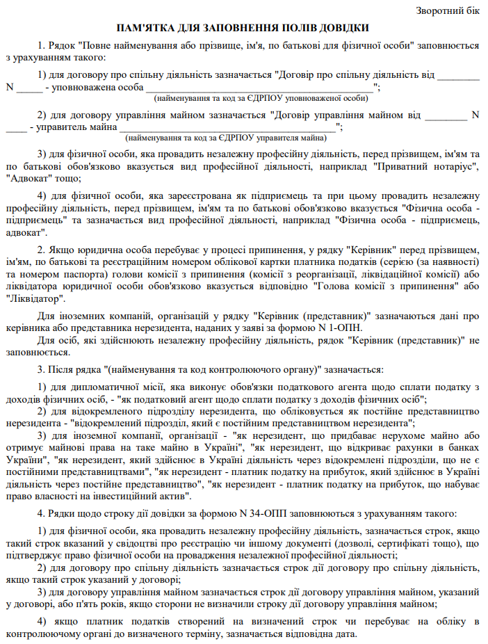 "Форма №34-ОПП" зразок