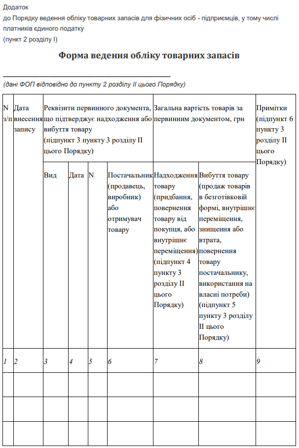 Завантажити бланк: "Форма ведення обліку товарних запасів"