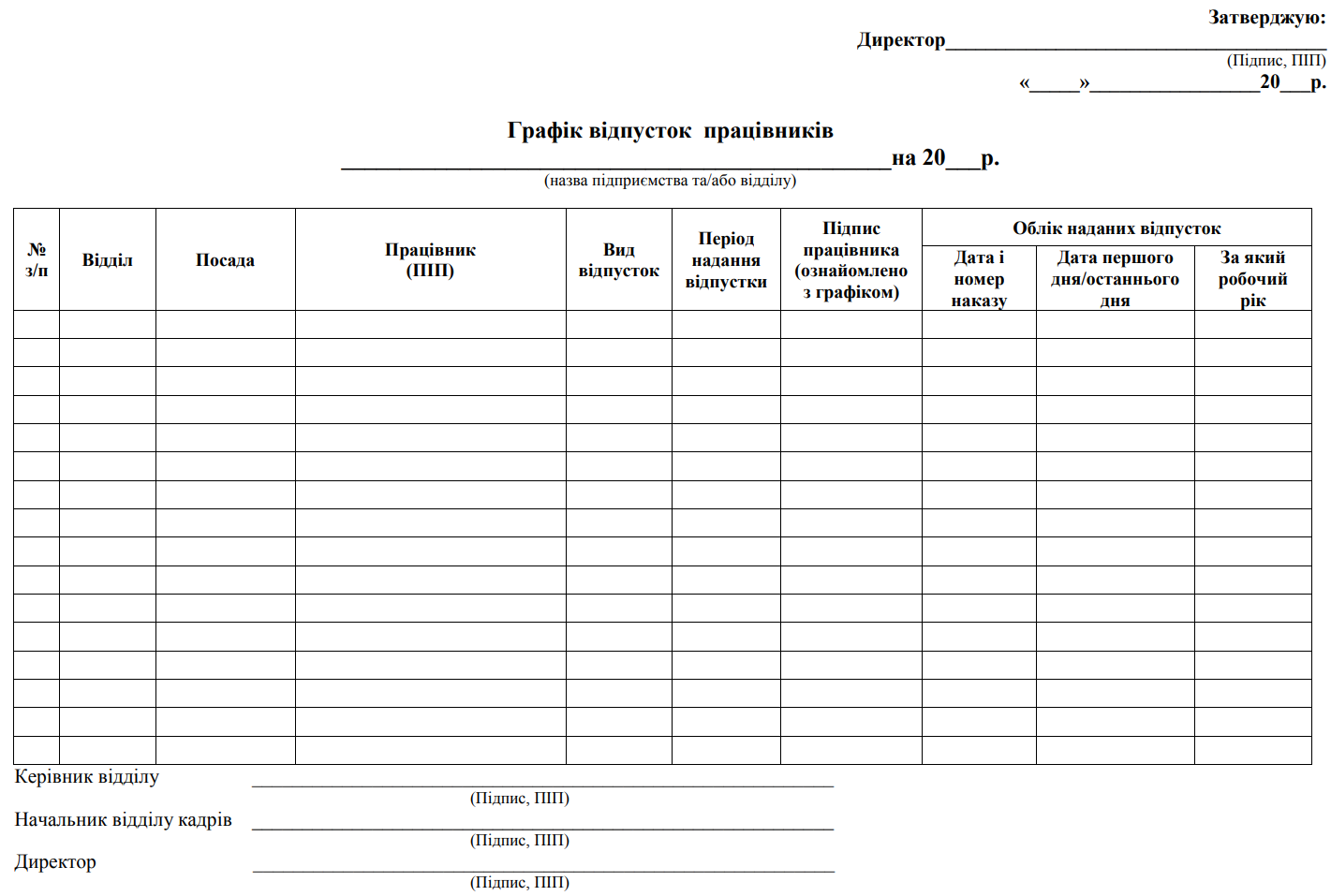 "Графік надання відпусток" зразок