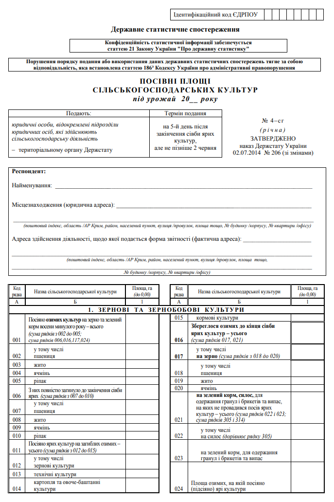 Повна назва бланку: Надходження цукрових буряків на переробні підприємства за січень-______ 20__ року (форма №4-заг).