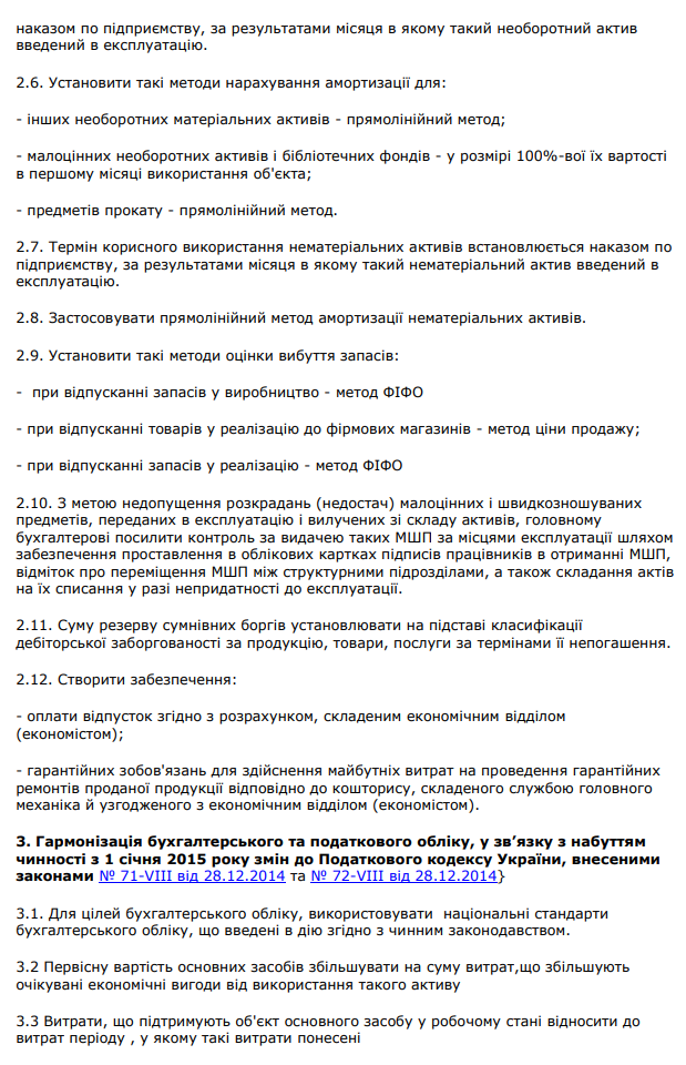 Наказ про облікову політику підприємства