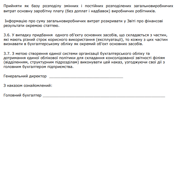 "Наказ про облікову політику підприємства" зразок