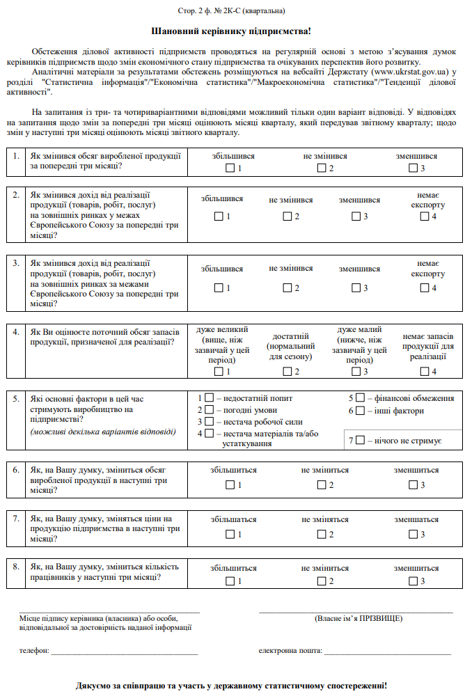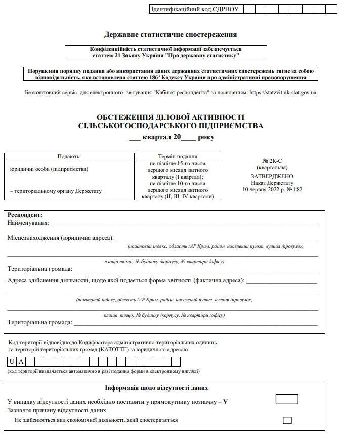 Повна назва бланку: Обстеження ділової активності сільськогосподарського підприємства (форма №2К-С).