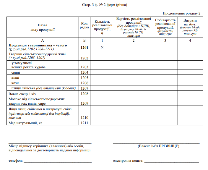 "Основні показники діяльності фермерського господарства (ф. №2-ферм)" зразок