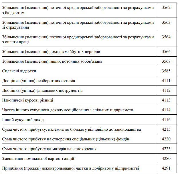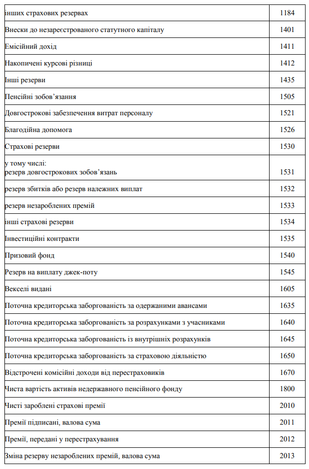 Перелік додаткових статей фінансової звітності