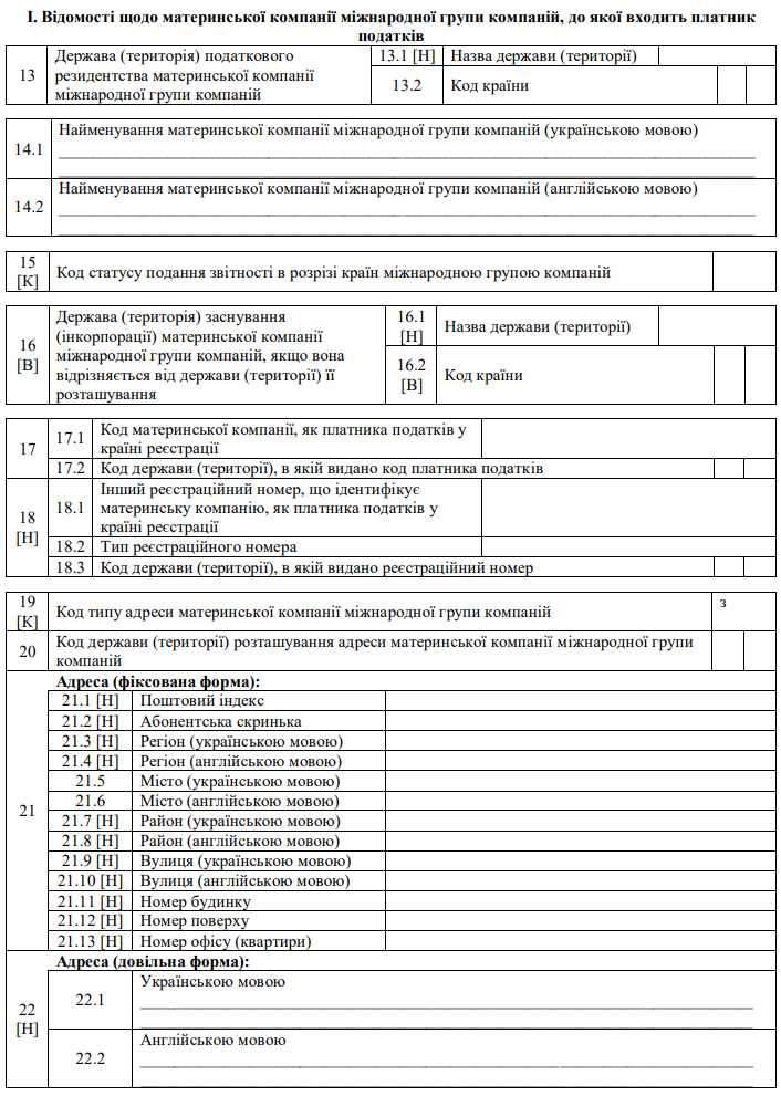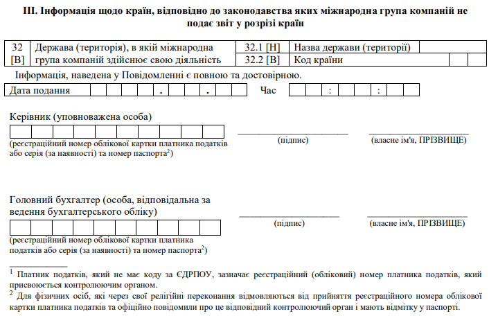 Повна назва бланку: Повідомлення про участь у міжнародній групі компаній.